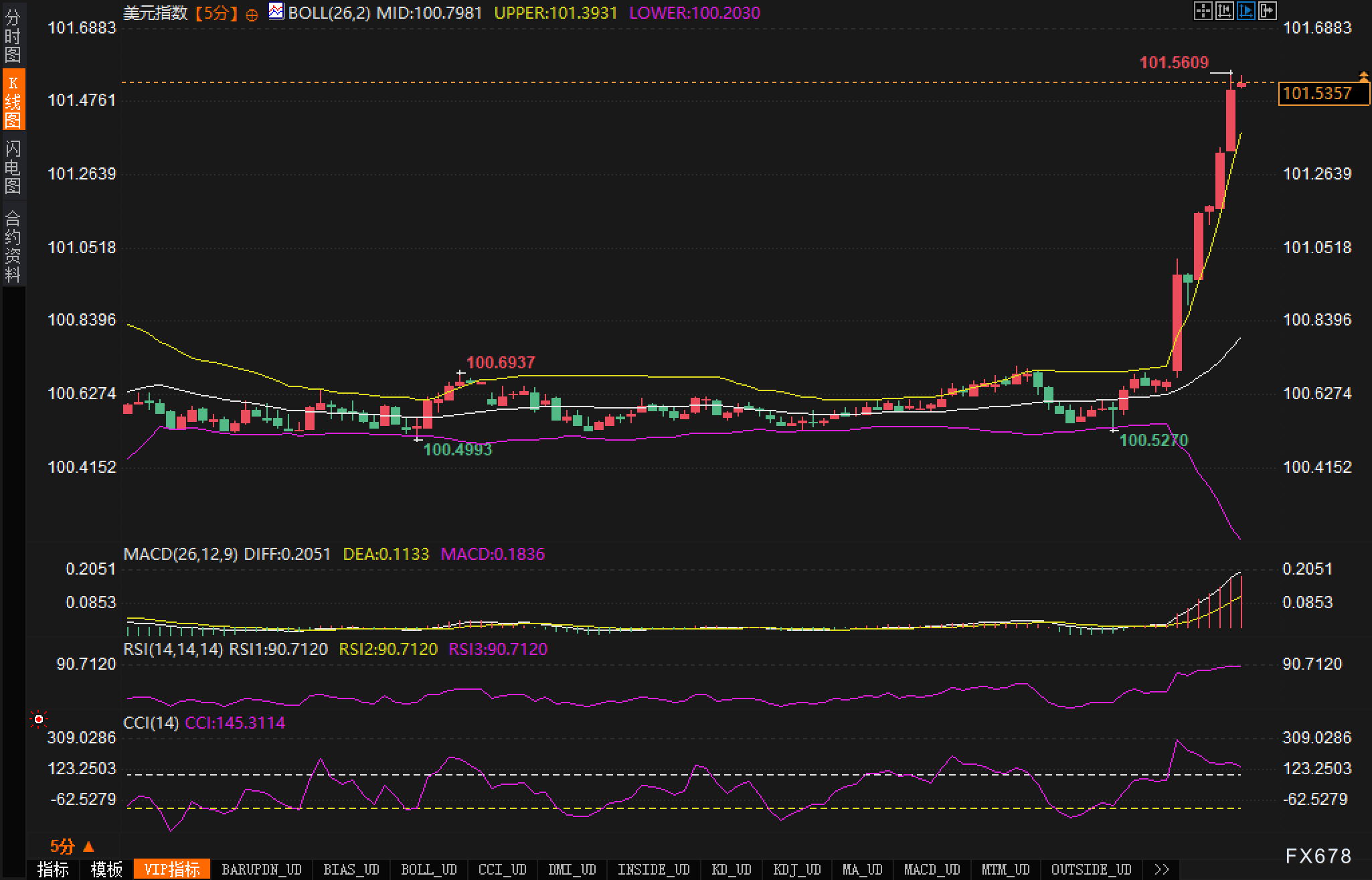 (美元指数5分钟图,来源易汇通)