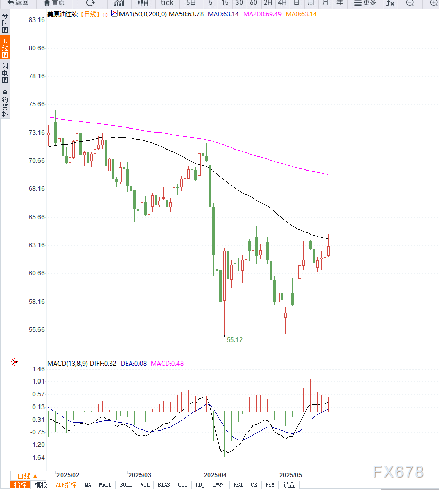 “这显示出美伊核谈判已走入死胡同,以色列可能不惜动武阻止伊朗核能力扩张,”西太平洋银行商品研究主管Robert Rennie表示。“原油市场正在重新评估中东风险,并将其转化为价格溢价。”   除了地缘风险带动油价上行之外,美国石油协会(API)最新数据显示,截至上周,美国原油库存意外减少约380万桶,远超市场预期的减少140万桶。这一数据被市场视为需求回暖的积极信号,也进一步助推了WTI原油价格的上涨势头。   消息传出后,传统避险货币如瑞士法郎和日元一度短线走强,但随着市场冷静解读消息,其涨幅迅速回吐。美国国防部和国家安全委员会未就此发表评论,以色列驻华盛顿大使馆亦未作回应。   尽管受到多轮制裁,伊朗仍通过灰色渠道保持石油出口。高盛指出,近期伊朗原油日出口量已增加约100万桶。“若中东局势导致这部分供应中断,原油价格可能因此上涨8美元,”高盛全球大宗商品研究联席主管Samantha Dart表示。   从日线图来看,WTI原油价格已成功突破60日均线,且连收三阳线,显示多头占据主导。MACD指标形成金叉,动能柱持续扩张,短期内有望挑战64.80美元高点阻力区域。   若有效站稳,将进一步打开向上空间,目标或看向68美元。但需警惕若消息面利多出尽,价格若跌破61.20美元支撑,则存在回调风险。总体技术结构偏多,消息面与库存数据形成共振,是当前上涨行情的关键推手。